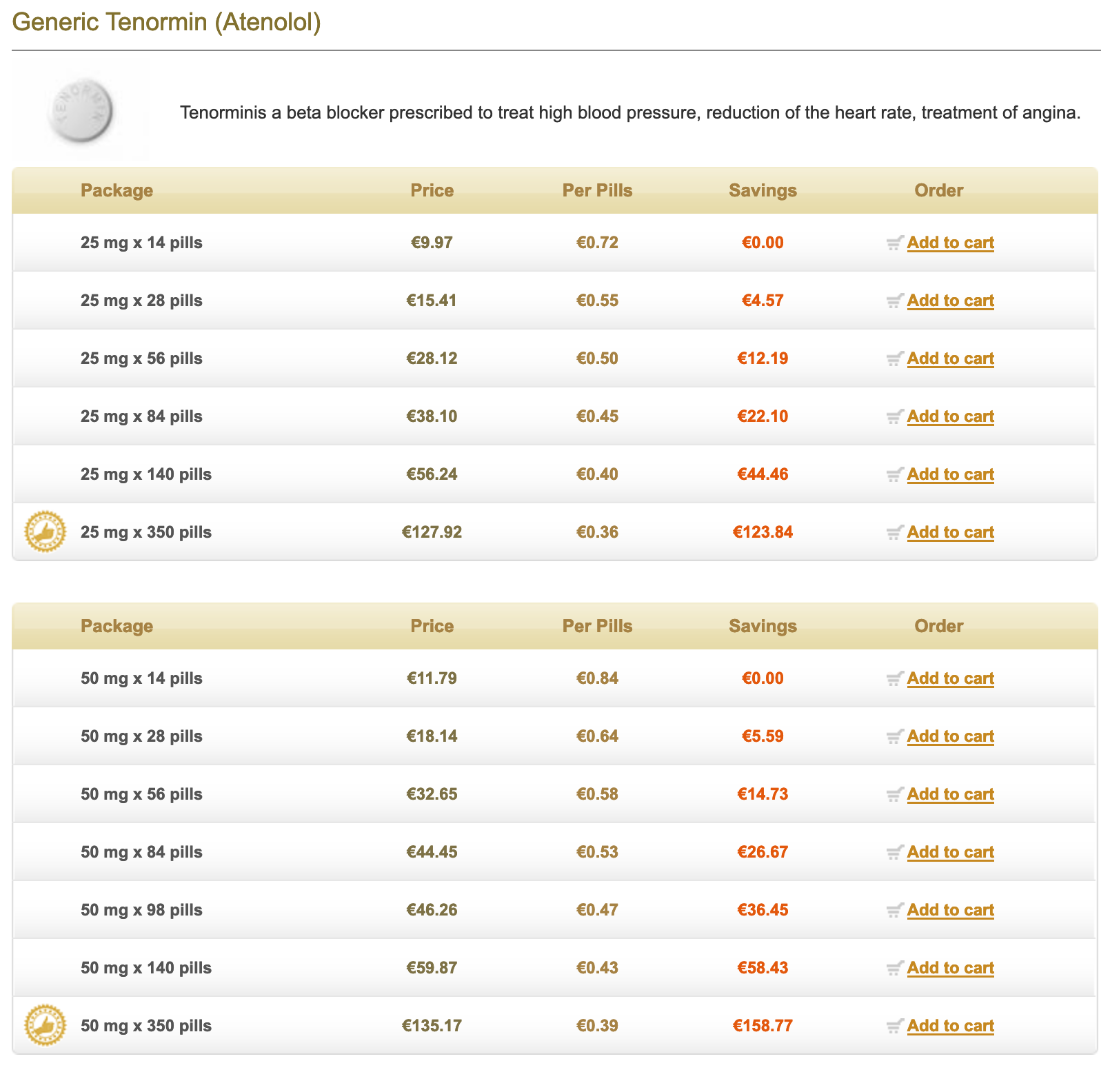If you experience any of these symptoms, you should consult your doctor immediately. You should also seek https://www.europeangeneric.com/ your doctor's advice before using the drug if you suffer from any of the following conditions: vessel or heart disease, kidney disease, thyroid disease or if you are allergic to Tenormin. Tenormin can be taken both with and without food. It is important to take the drug exactly as directed; overdose may lead to undesirable effects. You should avoid using Tenormin with any of the following medicines: Sotalol, Digoxin, Clonidine as well as drugs for inflammation and pain such as Naproxen and Ibuprofen.